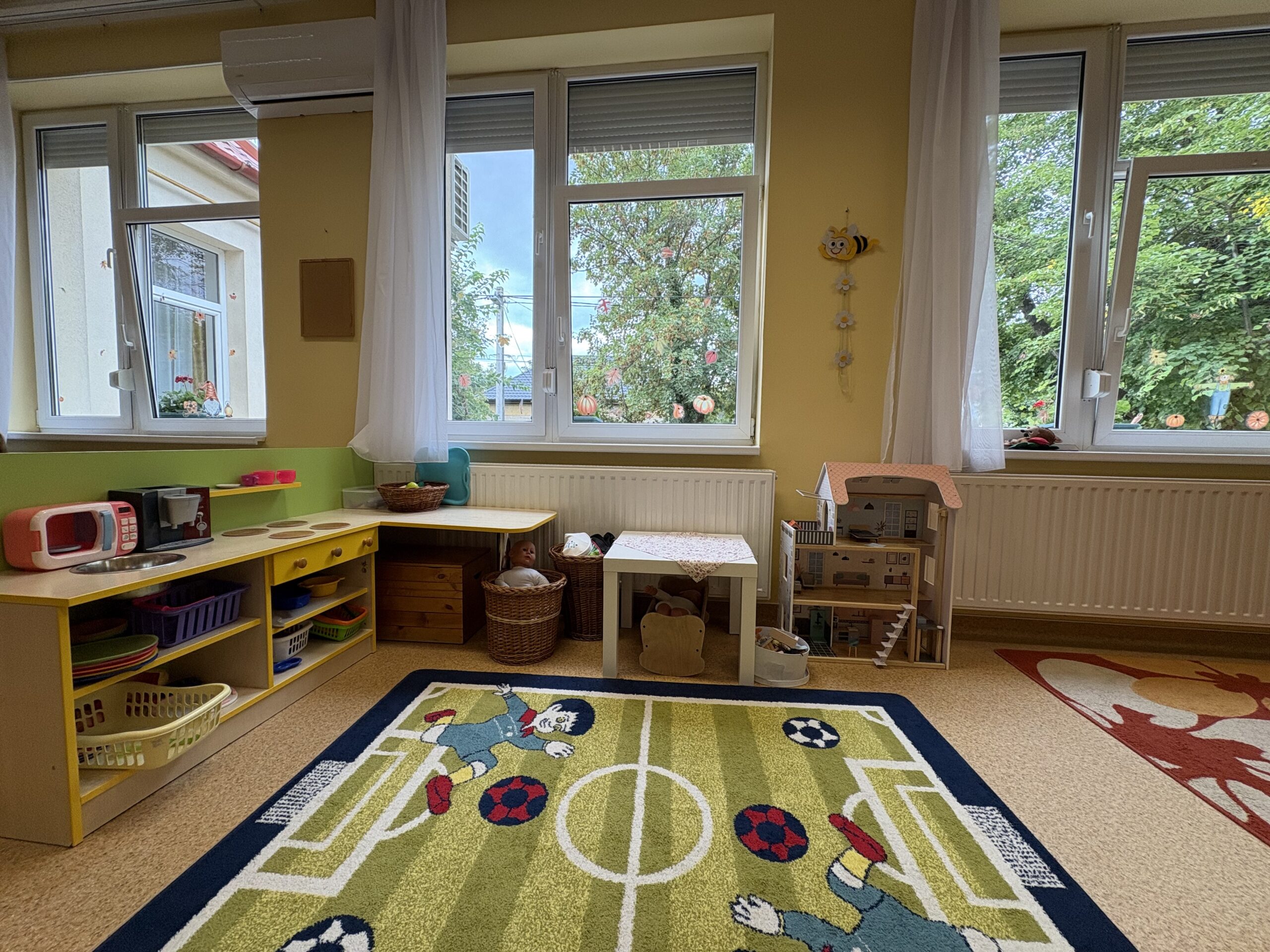 A játék alapvető tevékenységünk. Gyermekeink szívesen kapcsolódnak be a közös tevékenységekbe. Gyakran alakulnak spontán játszócsoportok a lego, duplo, és egyéb építő , konstruáló játékok körül. Lányok és fiúk egyaránt kedvelt játéka a babaszobai játék. Csoportunkban új barátságok alakulnak, mélyülnek el. Közösségépítő játékokkal, közös örömteli tevékenységekkel, ünnepekkel gazdagítjuk, gyakoroljuk a társas együttlét szabályait, az összetartozás érzését. Gyermekeink nyitottak, érdeklődőek, jól motiválhatók a játékos tevékenységek iránt. Kommunikációs készségüket szituációs és drámajátékokkal fejlesztjük. Tornatermünk jól felszerelt, amely biztosítja a megfelelő helyet a mozgás foglalkozásokhoz és a különböző nagy teret igénylő tevékenységekhez. A szülőkkel jó kapcsolat kialakítására törekszünk.